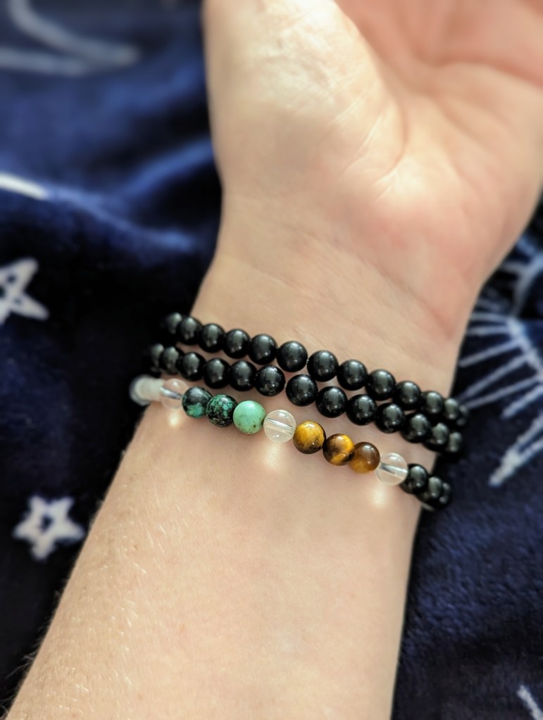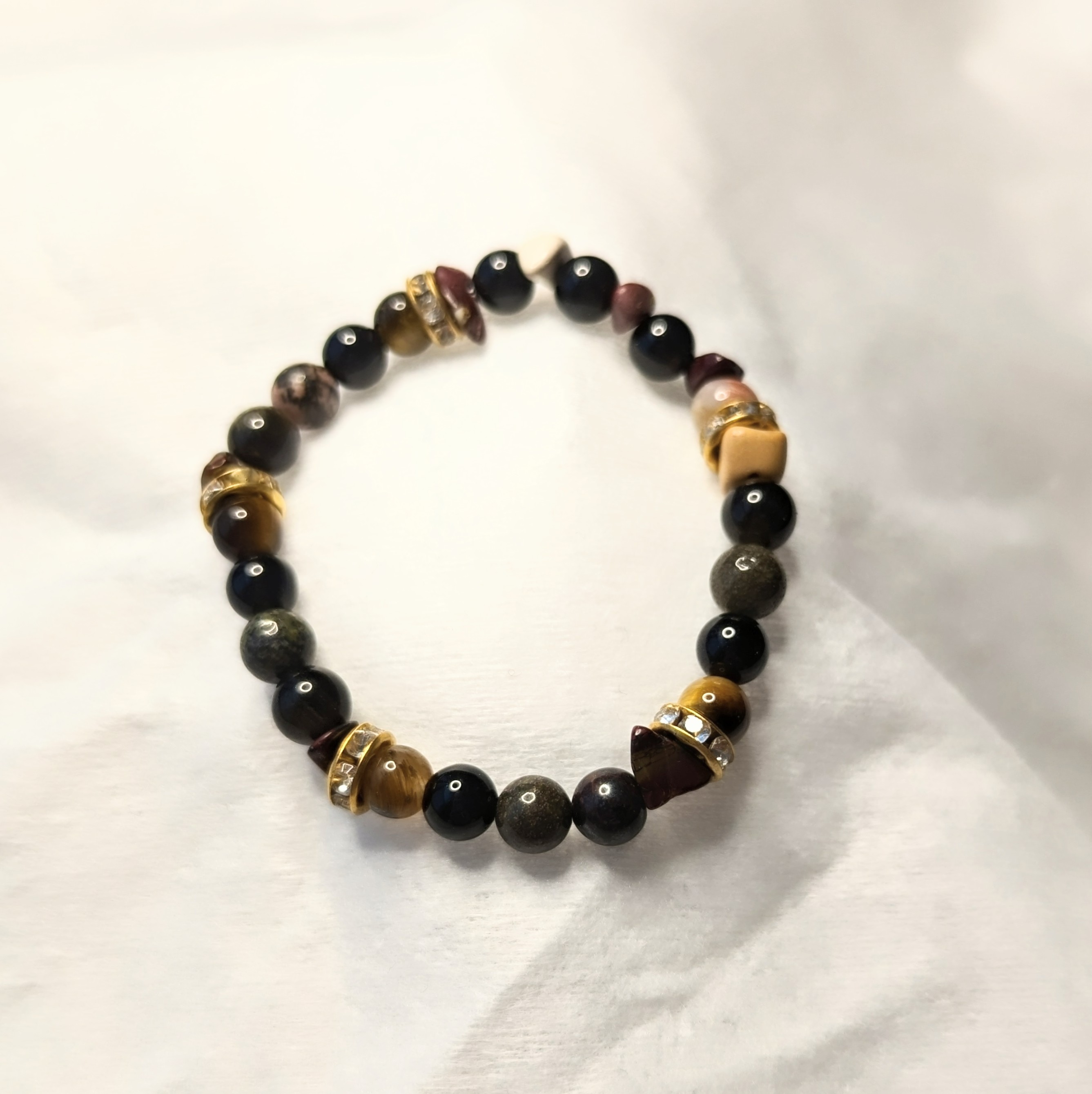 Size Small – Tiger’s Eye, Black Tourmaline, Dragon’s Blood, and Mookaite