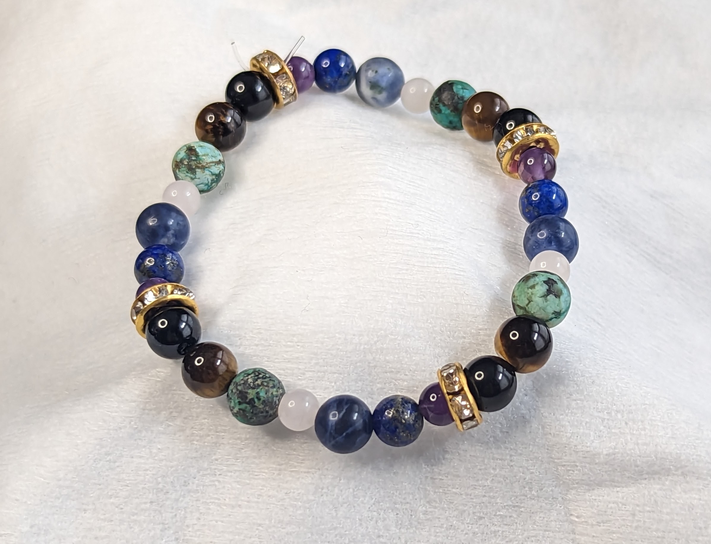 Amethyst, Lapis Lazuli, Sodalite, Rose Quartz, African Turquoise, Tiger’s Eye, Black Tourmaline