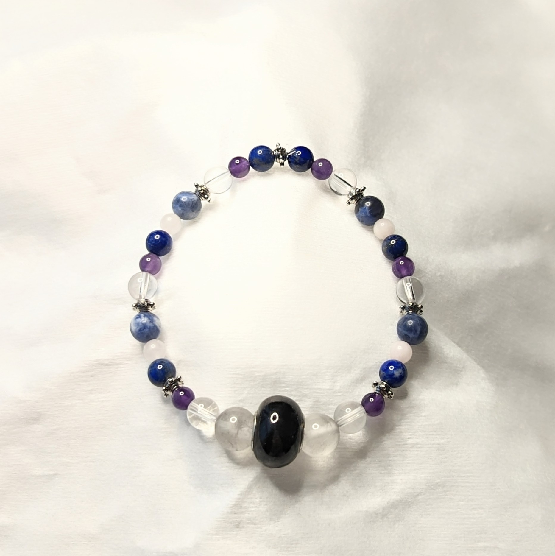 Smokey Quartz, Clear Quartz, Amethyst, Lapis Lazuli, Rose Quartz, and Sodalite